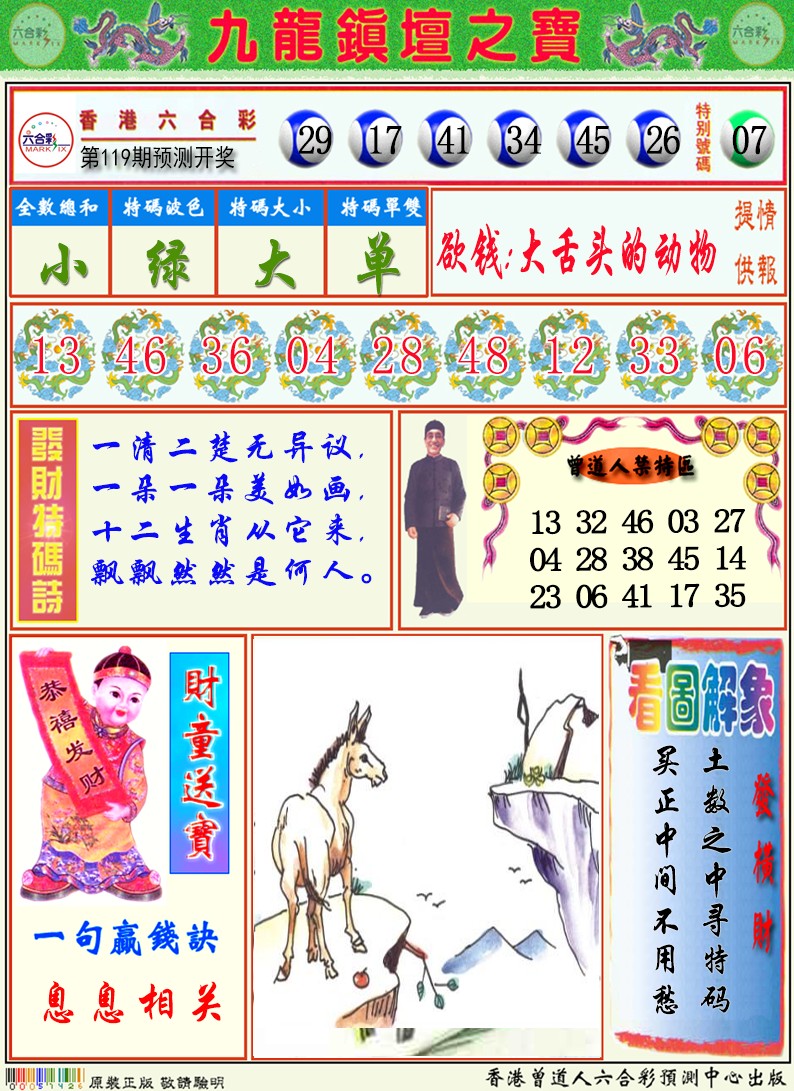 | 294 | 牛肖 | 1尾 | 绿双 | 1头 | 开鼠18准 |