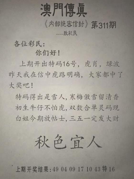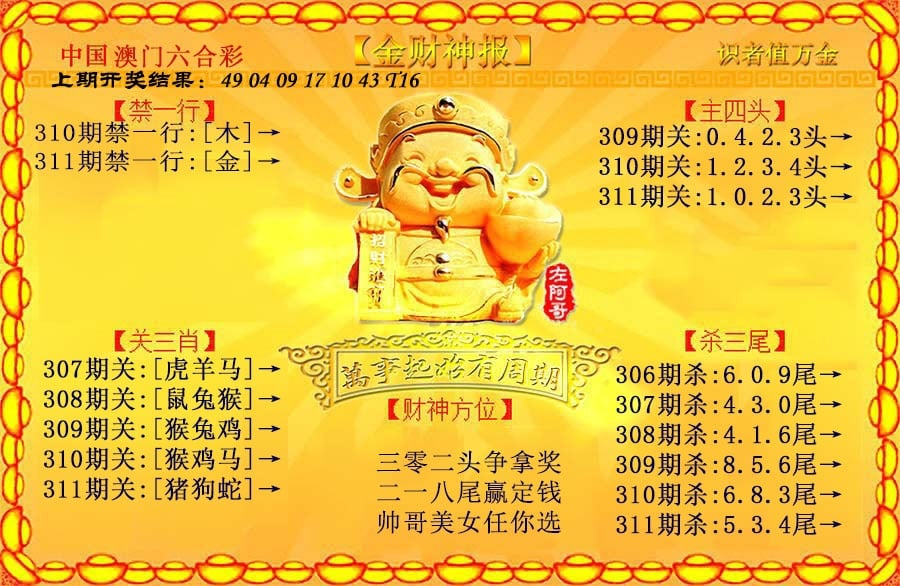 | 310 | 羊肖 | 4尾 | 红单 | 1头 | 开虎16准 |