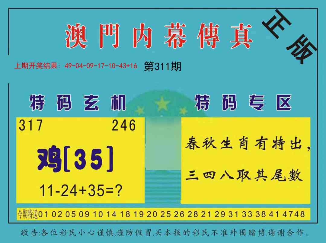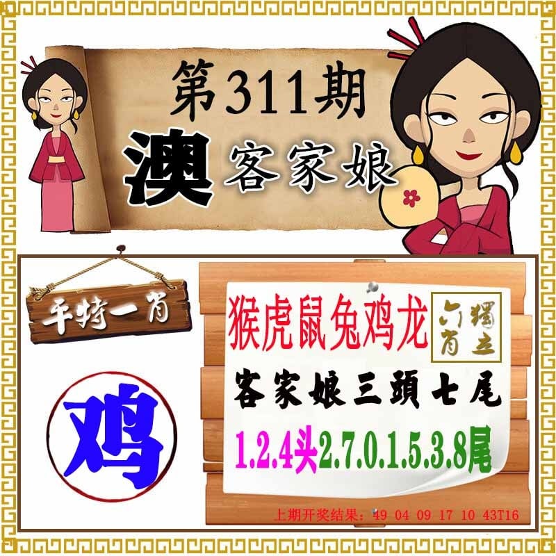 | 306 | 鸡肖 | 2尾 | 红单 | 2头 | 开牛17准 |