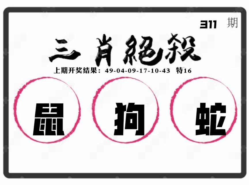 | 309 | 蛇肖 | 2尾 | 红双 | 2头 | 开鼠06准 |