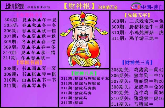 | 307 | 猪肖 | 8尾 | 蓝双 | 3头 | 开狗20准 |